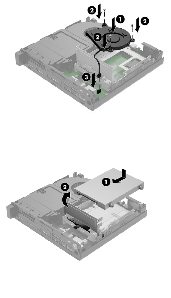 c. Pievienojiet ventilatora spraudni sistēmas platei (3).