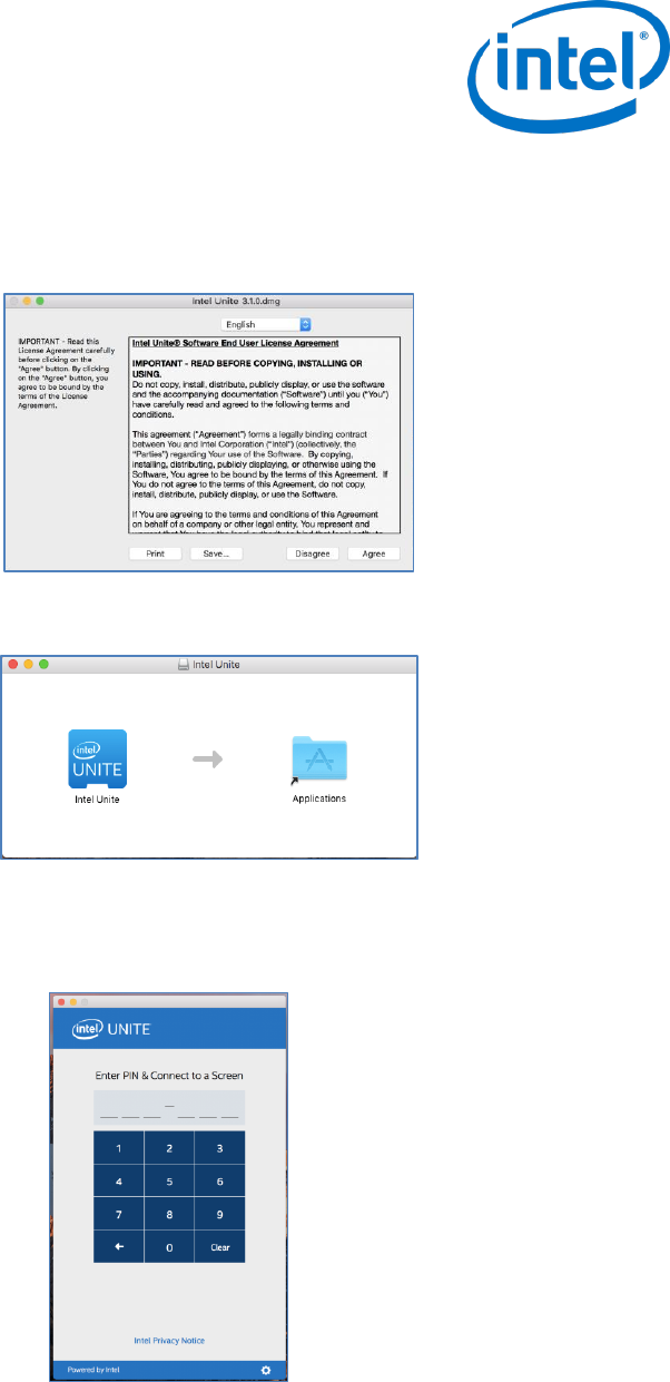Locate the file Intel Unite macOS X,X.dmg and download the software on your Mac Client. Double