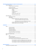 Setting power options ......................................................................................................................................... 38 Using power-saving states ................................................................................................................ 38 Initiating and exiting Sleep ............................................................................................. 39 Initiating and exiting Hibernation ..............................................
