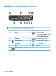 前面板组件 (ProDesk 400) 注:您计算机型号的外观可能与本节中提供的插图略有不同。 项 图标 组件 项 图标 组件 1 USB 3.x 端口 4 音频输出(耳机)/音频输入(麦克 风)组合插孔 2 带有 HP Sleep and Charge 的 USB 3.