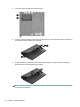 3. Rotate the hard drive latch down (2) to engage the hard drive.