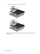 6. Tietokoneen mallista riippuen liu'uta kannen lukituskytkintä (1) vasemmalle tai löysää siipiruuvia (1)
