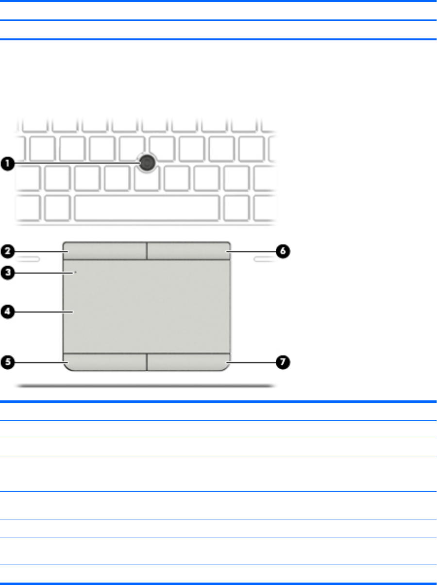 (2) Left pointing stick button (select products only) Functions like the left button on an external mouse.