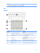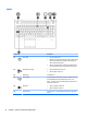 (4) TouchPad zone Reads your nger gestures to move the pointer or activate