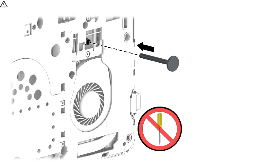 3. Gently insert a Torx screwdriver or other blunt tool into the keyboard release opening under the memory
