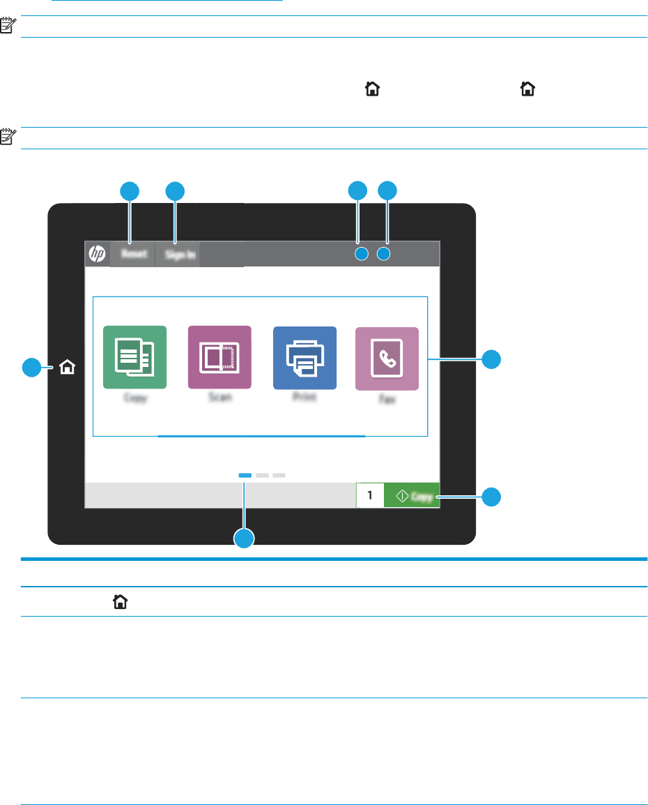 NOTE: The features that appear on the Home screen can vary, depending on the printer conguration.