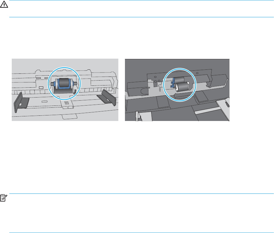 7. The rollers above the tray might be contaminated. Clean the rollers with a lint-free cloth dampened with