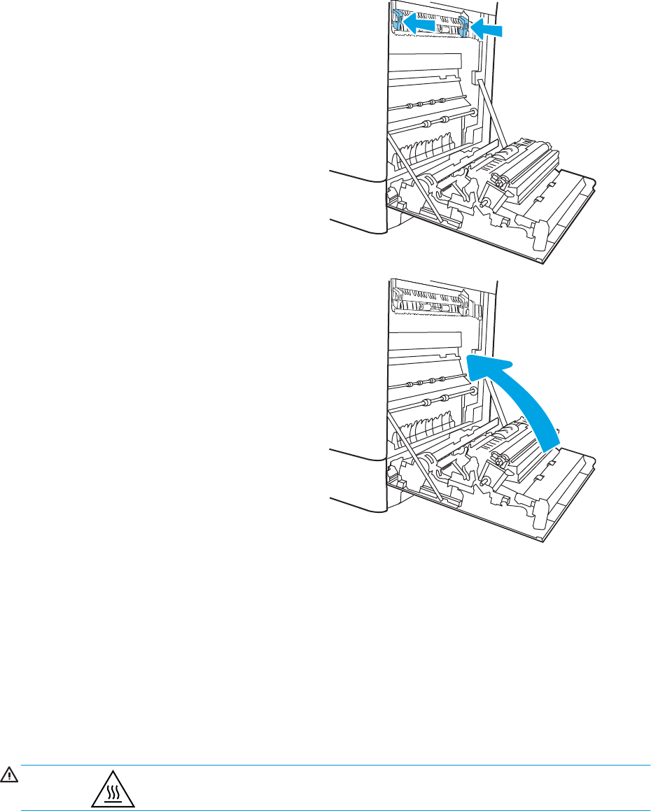 The fuser can be hot while the printer is in use. Wait for the fuser to cool before handling it.
