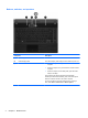 (4) Right TouchPad button* Functions like the right button on an external mouse.