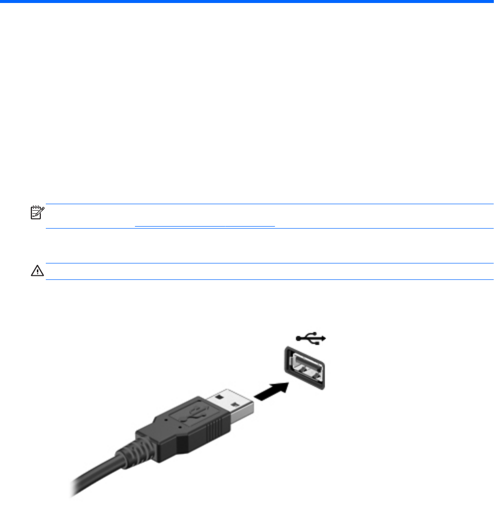 CAUTION: To prevent damage to a USB connector, use minimal force to connect a USB device.
