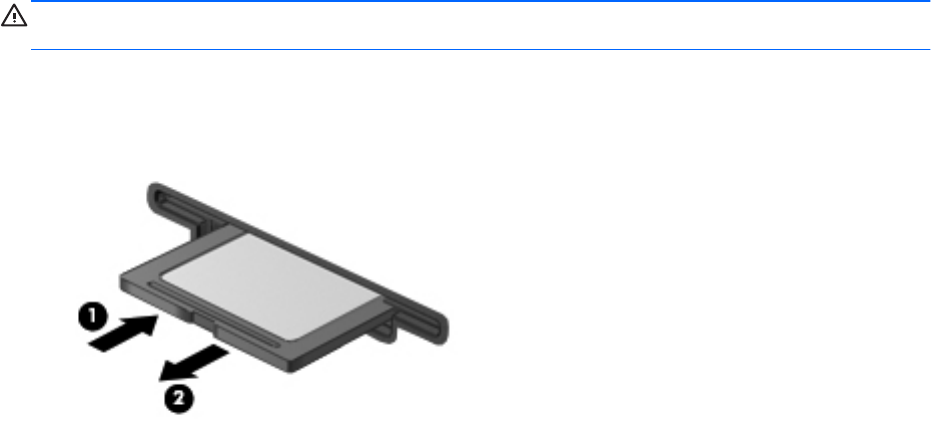 2. To eject the digital card, press in on the card (1), and then remove it from the slot (2).