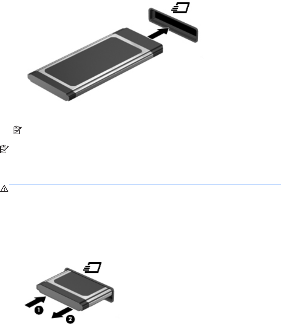 2. Insert the card into the ExpressCard slot, and then push in on the card until it is firmly seated.