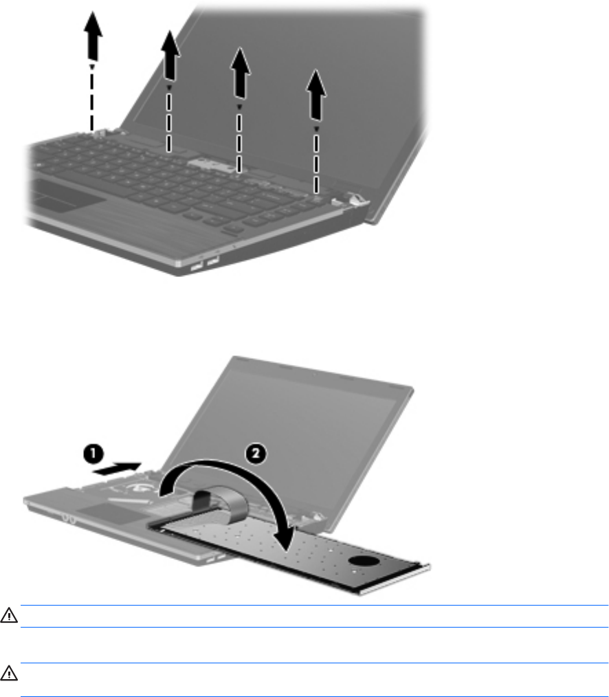 10. Slide the keyboard back toward the display (1), and then rotate it to the right side (2).