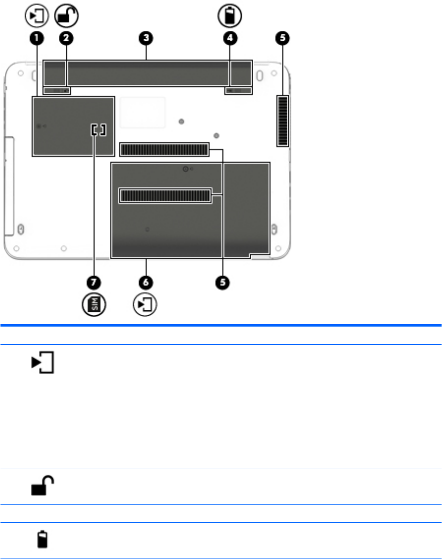 (1) Apkopes nodalījuma pārsegs Nodrošina piekļuvi bezvadu LAN (WLAN) moduļa slotam,