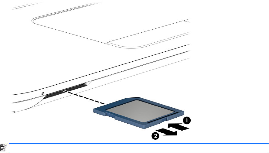 3. Iespiediet karti uz iekšu (1) un pēc tam izņemiet to no slota (2).