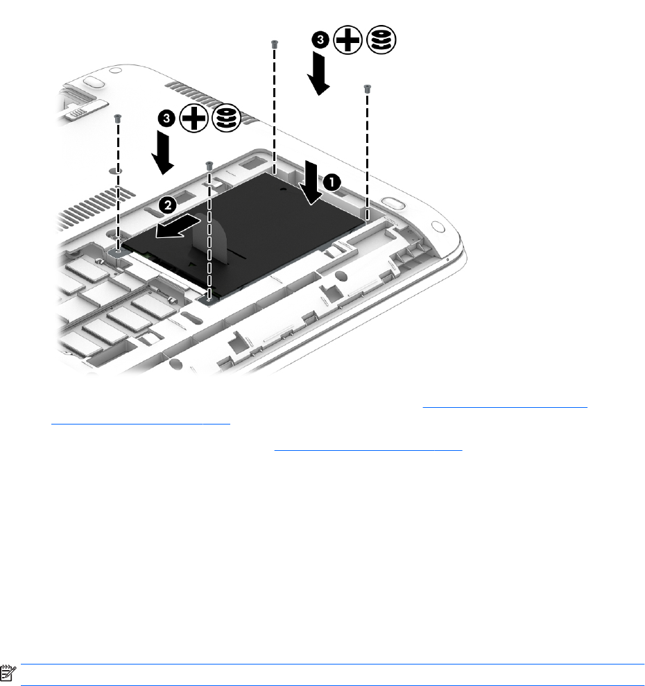 3. Pievelciet cietā diska skrūves (3).