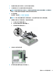 3. 将硬盘驱动器锁定器向下旋转 (2),以连接硬盘驱动器。