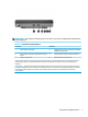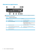 Компоненты задней панели ПРИМЕЧАНИЕ. Вид модели компьютера может несколько отличаться от изображения на рисунке, приведенном в данном разделе. Таблица 1-3 Компоненты задней панели Компонент Компонент 1 Заглушка антенны 7 Порты USB SuperSpeed (2) 2 Винт с накатанной головкой 8 Дополнительный порт Может использоваться один из следующих портов: DisplayPort, HDMI, VGA, USB Type-C, последовательный порт, Thunderbolt или Fiber NIC.