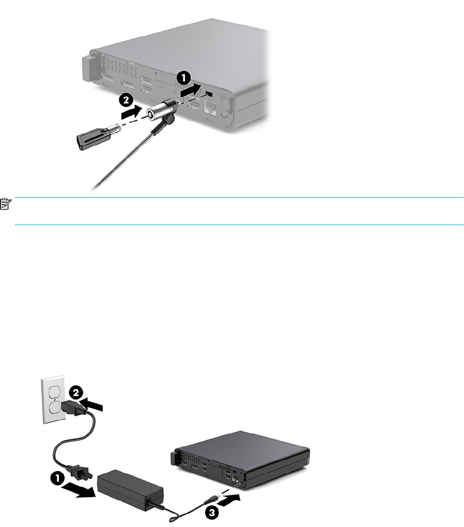 1. Schließen Sie das Netzkabel an das Netzteil (1) an.