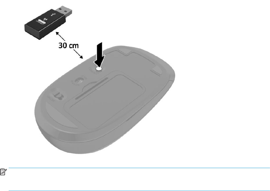 4. Drücken Sie die Verbindungstaste an der Unterseite der Maus und halten Sie dabei die Maus in 30 cm