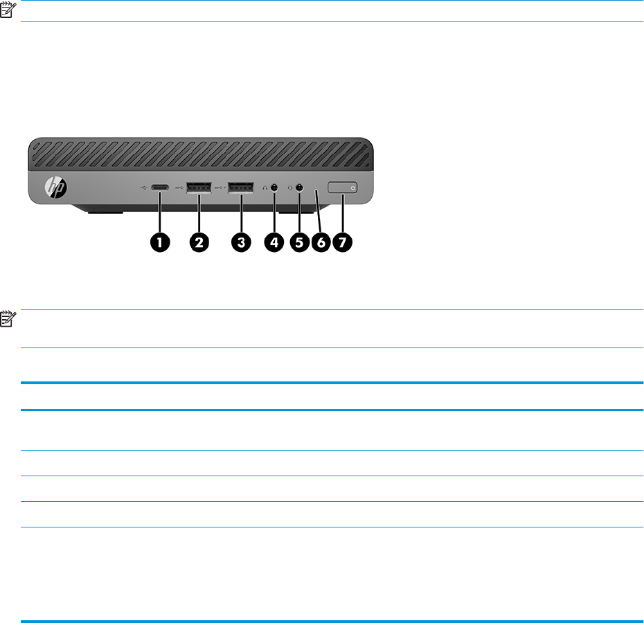 Tabelle 1-1 Komponenten auf der Vorderseite