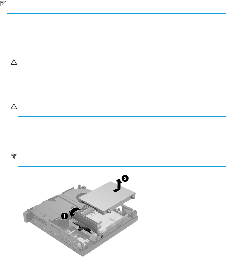 6. Lai izņemtu cieto disku, pagrieziet cietā diska ksatoru uz augšu un uz āru (1), atvienojot cieto disku no