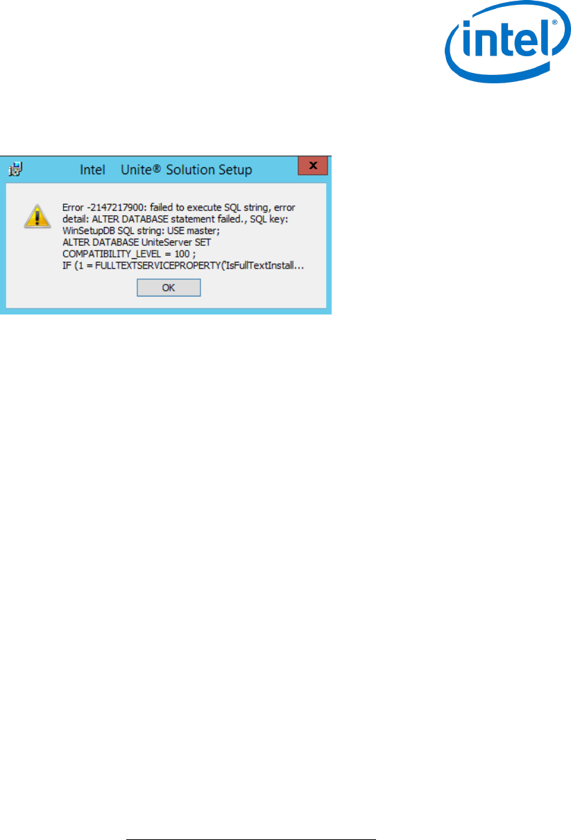 This error is generated when the Intel Unite server installer is run and the Unite database already