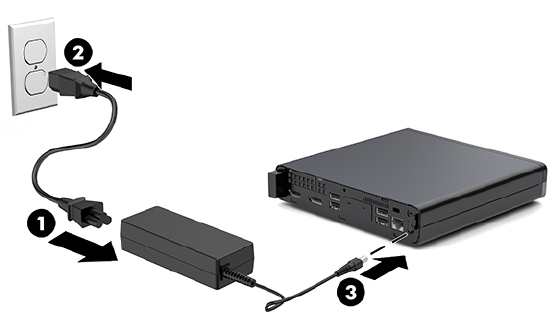 3. Conectaţi adaptorul de c.a. la conectorul de alimentare din partea din spate a computerului (3).