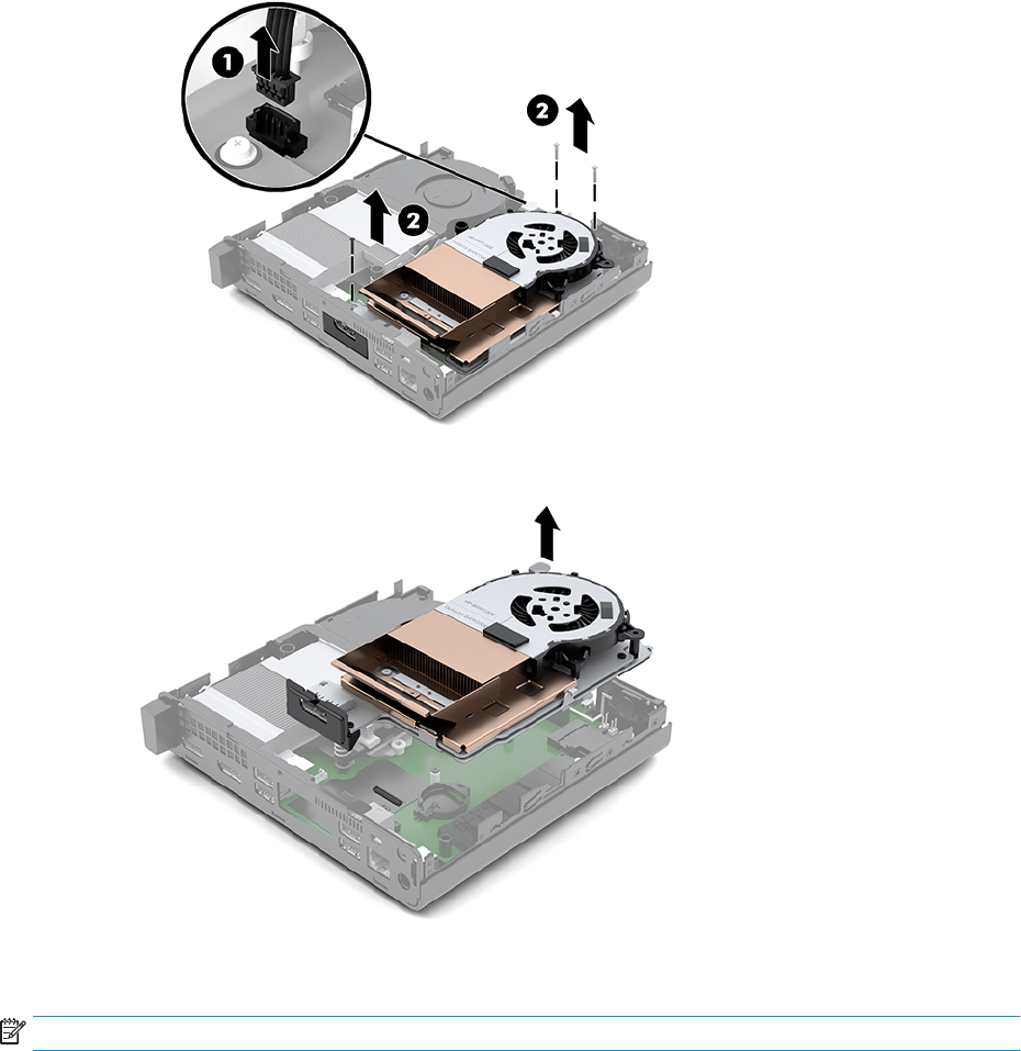 a. Deconectaţi cablul ventilatorului (1) de la placa de sistem.