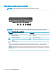 Các thành phần panel mặt trước GHI CHÚ: Tham khảo hình minh họa phù hợp nhất với máy tính của bạn. GHI CHÚ: Model máy tính của bạn nhìn có thể hơi khác so với hình minh họa trong mục này.