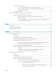 Fliken HP-webbtjänster ............................................................................................................. 143 Fliken Nätverk ............................................................................................................................. 144 Listan Andra länkar .................................................................................................................... 145 Konfigurera IP-nätverksinställningar ....................................................