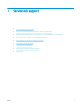 1 SVWW Service och support ● HP:s avtal för begränsad garanti ● HP:s skyddsgaranti: Begränsad garanti för LaserJet-tonerkassetter ● Begränsad garantiinformation för förbruknings- och underhållssats med lång livslängd ● HP:s principer för produkter som inte är tillverkade av HP ● HP-webbplats om förfalskat förbrukningsmaterial ● Data lagrade på tonerkassetten ● Licensavtal för slutanvändare ● Garantiservice för kundens egen reparation ● Kundsupport 1