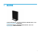 支援的方向與放置 注意:您必須遵守 HP 支援的方向,才能確保您的精簡型電腦運作正常。 除非精簡型電腦已使用 HP Quick Release 固定,否則必須與支架連接才可操作,以確保精簡型電腦周圍 有足夠的氣流。 ● HP 支援水平放置精簡型電腦︰ ● HP 支援垂直放置精簡型電腦︰ 吊掛精簡型電腦並調整方向 13