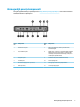 Priekšējā paneļa komponenti Lai iegūtu papildinformāciju, apmeklējiet vietni http://www.hp.com/go/quickspecs un atrodiet šo konkrēto vienkāršoto klientu un QuickSpecs. 2 Vienu ms Komponents Vienu ms Komponents 1 Mikrofonaustiņu ligzda 4 Zibatmiņas diska aktivitātes indikators 2 USB 3.0 porti (2) 5 Strāvas poga 3 USB 2.0 porti (2) 1. nodaļa.