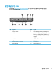 앞면 패널 구성 요소 자세한 내용은 http://www.hp.com/go/quickspecs로 이동하여 해당 씬 클라이언트 모델을 검색한 후 QuickSpecs를 확인하십시오. 2 항목 구성 요소 항목 구성 요소 1 헤드셋 잭 4 플래시 드라이브 작동 LED 2 USB 3.0 포트 2개 5 전원 버튼 3 USB 2.
