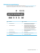 Элементы управления на передней панели Для получения дополнительной информации посетите веб-сайт http://www.hp.com/go/quickspecs и выполните поиск определенного тонкого клиента, чтобы найти QuickSpec тонкого клиента. 2 Элеме нт Компонент Элеме нт Компонент 1 Гнездо для гарнитуры 4 Светодиодный индикатор активности флэшнакопителя 2 Порты USB 3.0 (2) 5 Кнопка питания 3 Порты USB 2.