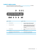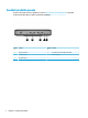 Součásti předního panelu Chcete-li získat další informace, přejděte na stránku http://www.hp.com/go/quickspecs a vyhledejte konkrétního tenkého klienta, abyste nalezli údaje QuickSpecs. 2 Položk a Součást Položk a Součást 1 Vstup pro headset 4 Kontrolka činnosti jednotky paměti flash 2 Porty USB 3.0 (2) 5 Tlačítko napájení 3 Porty USB 2.