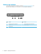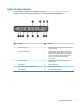 Τμήματα στην πρόσοψη Για περισσότερες πληροφορίες, επισκεφθείτε τη διεύθυνση http://www.hp.com/go/quickspecs και πραγματοποιήστε αναζήτηση για το συγκεκριμένο thin client για να βρείτε τα QuickSpecs. 2 Αριθμ ός Στοιχείο Αριθμ ός Στοιχείο 1 Υποδοχή σετ ακουστικών-μικροφώνου 4 Ένδειξη LED δραστηριότητας μονάδας Flash 2 Θύρες USB 3.0 (2) 5 Κουμπί λειτουργίας 3 Θύρες USB 2.