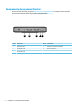 Componente de pe panoul frontal Pentru mai multe informaţii, mergeţi la http://www.hp.com/go/quickspecs și realizați o căutare specifică pentru clientul dumneavoastră subţire pentru a găsi QuickSpecs. 2 Obiect Componentă Obiect Componentă 1 Mufă pentru căşti 4 LED pentru activitatea unității flash 2 Porturi USB 3.0 (2) 5 Buton de alimentare 3 Porturi USB 2.
