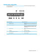Komponente prednje table Za više informacija idite na http://www.hp.com/go/quickspecs i potražite svog tankog klijenta da biste pronašli QuickSpecks. 2 Stavka Komponenta Stavka Komponenta 1 Utikač za slušalice sa mikrofonom 4 LED lampica za aktivnost fleš diska 2 USB 3.0 priključci (2) 5 Dugme za napajanje 3 USB 2.