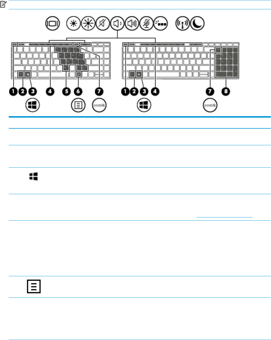 (5) Pavé numérique interne Un pavé numérique superposé sur les touches du clavier