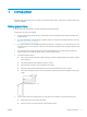 ● If the printer is making an unusual noise not heard during normal operation ● A piece of metal or a liquid (not part of cleaning and maintenance routines) touches internal parts of the printer ● During an electrical storm (thunder and lightning) ● During a power failure ● To avoid being pinched, keep your fingers away from the gap between the bottom of the printer and the stand while you're moving the printer with stand. Using this guide This guide can be downloaded from the HP Support Center.