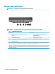 Dijelovi na stražnjoj strani NAPOMENA: Vaš model računala može se malo razlikovati od ilustracija u ovom odjeljku. Tablica 1-3 Dijelovi na stražnjoj strani Komponenta Komponenta 1 Poklopac antene 7 USB SuperSpeed priključci (2) 2 Vijak 8 Dodatni priključak Može se koristiti jedan od sljedećih priključaka: DisplayPort, HDMI, VGA, USB Type-C, serijski priključak, Thunderbolt ili Fiber NIC.