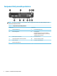 Componenti del pannello posteriore NOTA: il modello di computer in uso potrebbe risultare leggermente diverso da quello raffigurato nelle illustrazioni di questa sezione. Tabella 1-3 Componenti del pannello posteriore Componente Componente 1 Coperchio dell'antenna 7 Porte USB SuperSpeed (2) 2 Vite a testa zigrinata 8 Porta opzionale Una delle seguenti porte può essere utilizzata: DisplayPort, HDMI, VGA, USB Type-C, porta seriale, Thunderbolt o fibra ottica NIC.