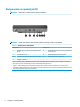 Deli na zadnji strani OPOMBA: Model računalnika se lahko nekoliko razlikuje od tistega na sliki v tem razdelku. Tabela 1-3 Deli na zadnji strani Komponenta Komponenta 1 Pokrov antene 7 Vrata USB SuperSpeed (2) 2 Krilati vijak 8 Dodatna vrata Lahko uporabite eno od sledečih vrat: DisplayPort, HDMI, VGA, USB vrste C, serijska vrata, Thunderbolt ali Fiber NIC.
