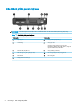 Các thành phần panel mặt sau GHI CHÚ: Model máy tính của bạn nhìn có thể hơi khác so với hình minh họa trong mục này. Bảng 1-3 Các thành phần panel mặt sau Thành phần Thành phần 1 Nắp ăng-ten 7 Cổng USB SuperSpeed (2) 2 Vít tai hồng 8 Cổng tùy chọn Có thể sử dụng một trong các cổng sau: DisplayPort, HDMI, VGA, USB Type-C, cổng nối ếp, Thunderbolt hoặc Fiber NIC.