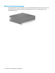Desktopstand omzetten in towerconfiguratie De Small Form Factor computer kan worden gebruikt in staande positie met een optionele torenstandaard die kan worden aangeschaft bij HP. OPMERKING: HP beveelt het gebruik van een towerstandaard aan om de computer te stabiliseren wanneer deze in een towerconfiguratie wordt gebruikt. 1. Bereid de computer voor op het demonteren. Raadpleeg Het demonteren voorbereiden op pagina 5. 2.