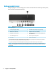 Deli na zadnji strani Tabela 1-2 Komponente na zadnji plošči Deli na zadnji strani 1 Vhodni priključek za zvok 6 Priključki za monitor DisplayPort (2) 2 Serijska vrata (dodatno) 7 Dodatna vrata 3 Omrežni priključek RJ-45 8 Vrata USB (2) 4 Priključek za napajalni kabel 9 Vrata USB SuperSpeed (4)* 5 Vtič za izhod zvoka za naprave z lastnim napajanjem * Ta vrata povežejo napravo USB, zagotavljajo hiter prenos podatkov in celo pri izklopljenem računalniku polnijo izdelke, na primer mobilni te