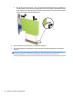 c. Hvis du skal fjerne et PCI Express ×16-kort, skal du trække fastholdelsesarmen (1) på bagsiden af