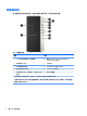 - Non-vPro 系统 表 1-3 后面板组件 组件 组件 1 音频输入插孔 6 有源音频设备音频输出插孔 2 双模式 DisplayPort 显示器接口(两个) 7 RJ-45(网络)插孔 3 可选端口 8 串行端口(仅限部分产品) 4 具有从 S4/S5 唤醒功能的 USB 端口(四 个) 9 电源线接口 5 USB SuperSpeed 端口(两个) 注:如果使用 USB 键盘,HP 建议将键盘连接到一个具有从 S4/S5 唤醒功能的 USB 端口。 如果主板其中一个插槽中安装了显卡,则可以使用该显卡上的接口和/或主板集成显卡上的接口。安装的 特定显卡和软件配置将决定您的行为。 您可通过更改 Computer Setup(计算机设置)的设置,禁用主板上的集成显卡。 4 第 1 章 产品特点